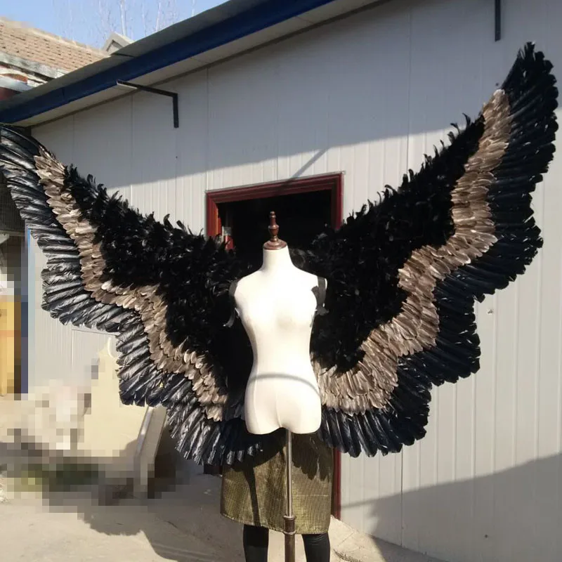 BEST QUALITY Costumed beautiful Black cartoon feather angel wings for Fashion show Displays wedding shooting pro