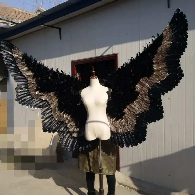 Costumed beautiful Black cartoon feather angel wings for Fashion show Displays wedding shooting pro