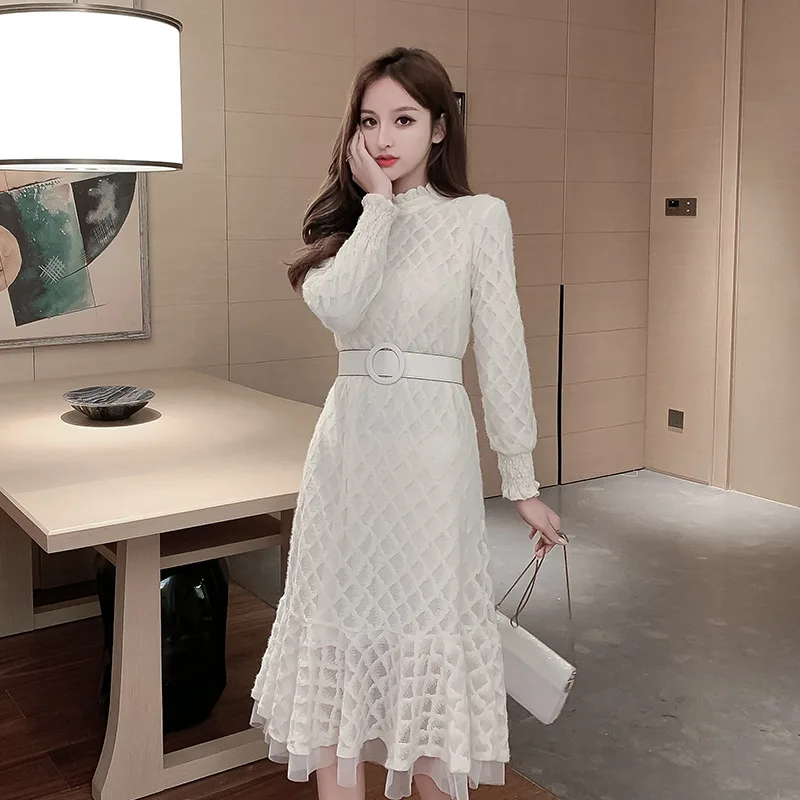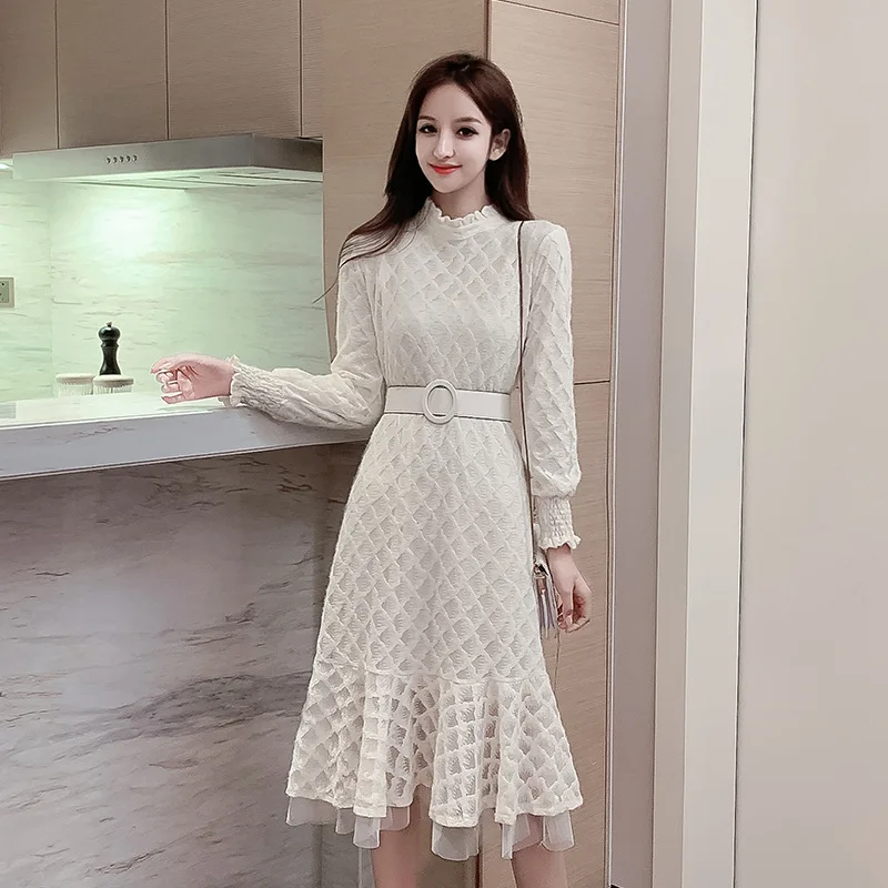 Photo Shoot 2019 Autumn And Winter New Style WOMEN'S Dress Frilled Collar Waist Hugging Slimming Ba