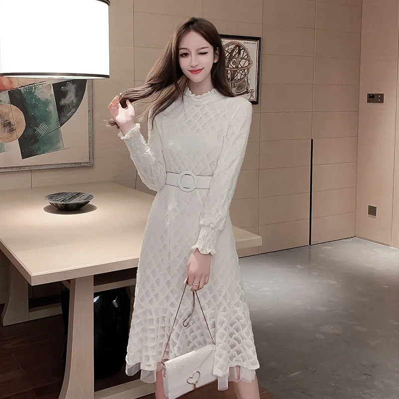 BEST Photo Shoot 2019 Autumn And Winter New Style WOMEN'S Dress Frilled Collar Waist Hugging Slimming Ba