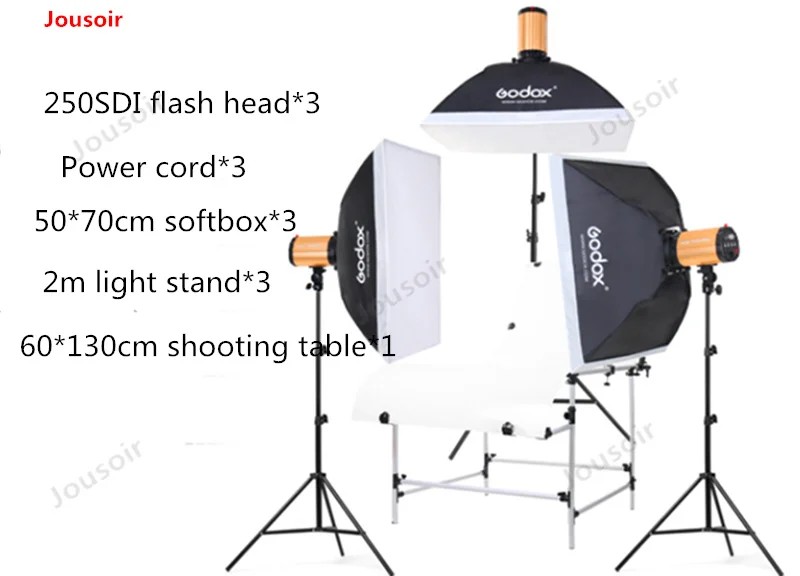 HOT Sale Godox 250W flash light kit 750w three-lamp still Life shooting table studio set flash softbox portr